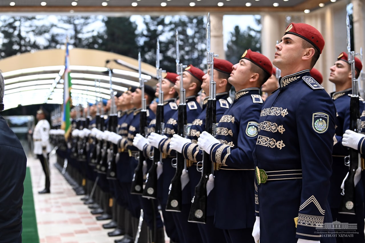 Турецкого президента Реджепа Эрдогана Национальная гвардия Узбекистана встречала в новой форме.
